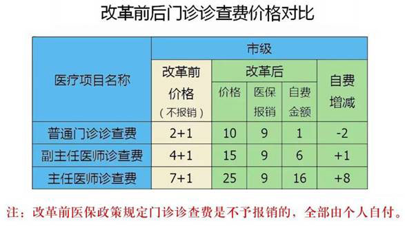 三、调整医保支付政策。调整后的医疗服务项目,按规定纳入医保支付报销范围;门诊诊查费应由医保报销的费用,医保统筹基金全额报销;职工医保个人账户资金可支付门诊诊查费个人自付部分。